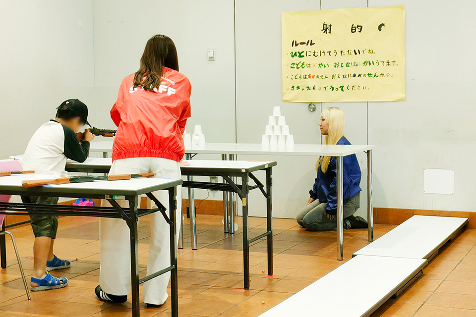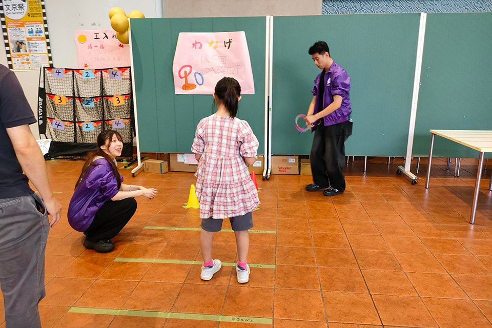10/18(土)は10名、19(日)は8名の学生が参加し、来場した子どもたちに輪投げやこども射的などの遊び方を丁寧に教え、常に笑顔で対応する様子が見られました。