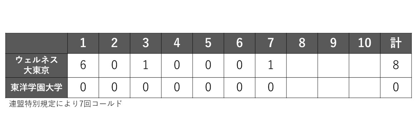【第七戦】10月11日(土) vs日本ウェルネススポーツ大学 二戦目 8-0 [連盟特別規定により7回コールド] ●