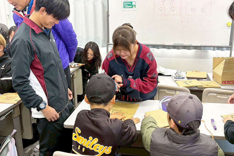 テニス部員と子どもたちが一緒にラケット作りをする姿も見られ、終始和やかな雰囲気に包まれていました。