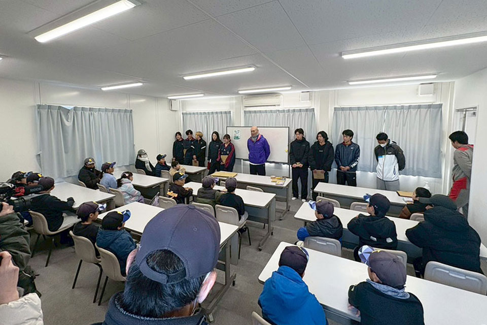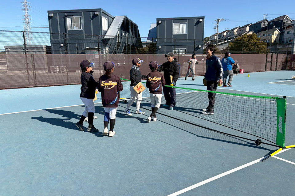 佐藤監督は、「テニスの楽しさを知ってもらうために『テニピン』が生まれ、現在では全国の小学校で取り入れられ始めています。普段、東洋学園大学グラウンド(千葉県松戸市)で活動させていただいていることもあり、地域に何か貢献できないかと考え、昨年からテニピン教室を始めました。テニスやボール遊びの楽しさを知ってもらえる機会になっていれば嬉しいです」と話しました。