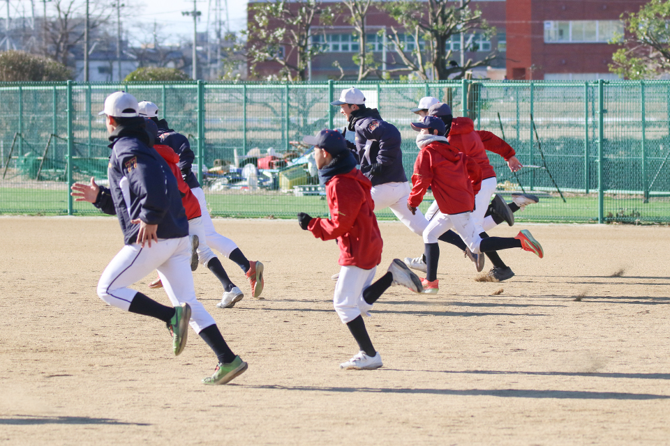 さらに翌週の2/1(日)には、本学の旧キャンパスを活用している流山市立南流山中学校(千葉県流山市)で「中学生野球教室」を開催し、地域の子どもたちと野球を通じて交流しました。