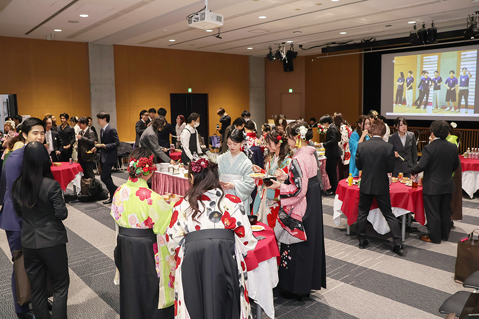 フェニックスホールでは、学生会主催の祝賀パーティーを開催。