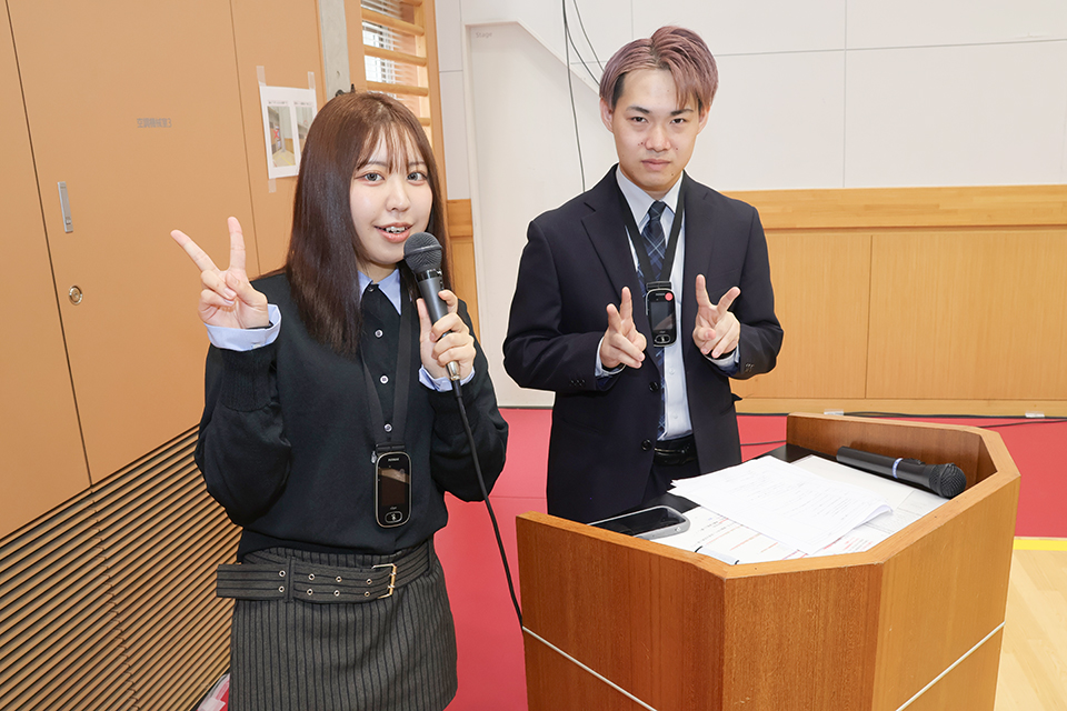 舞台上に大型のスクリーンを配置し、目でも情報が見やすい式典演出が行われたほか、在学生主催の歓迎イベントも併催するなど、新たな試みが行われました。
