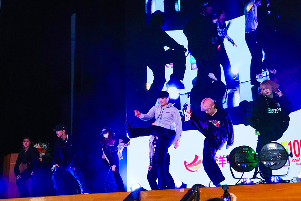 学生会スタッフがMCを務め、まずはExtreme☆Steppers(ダンス部)が歓迎のパフォーマンスを披露しました。