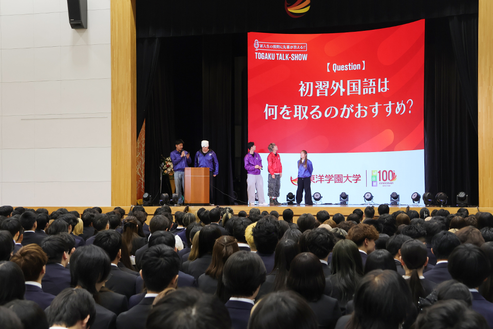 その後は、大型スクリーンを活用してクラブ・サークル紹介動画の上映を行ったほか、「TOGAKU TALK SHOW」では、学園祭運営局のスタッフが新入生からの質問に本音で回答。