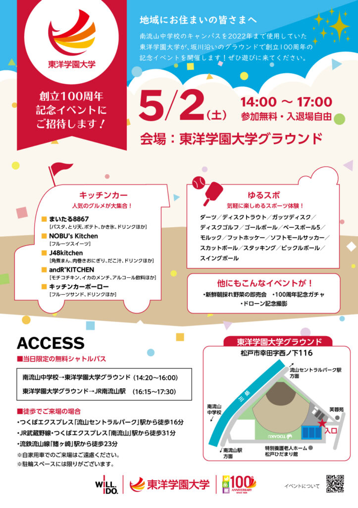 5/2(土)、東洋学園大学グラウンド(千葉県松戸市)にて、100周年記念イベントを開催します!