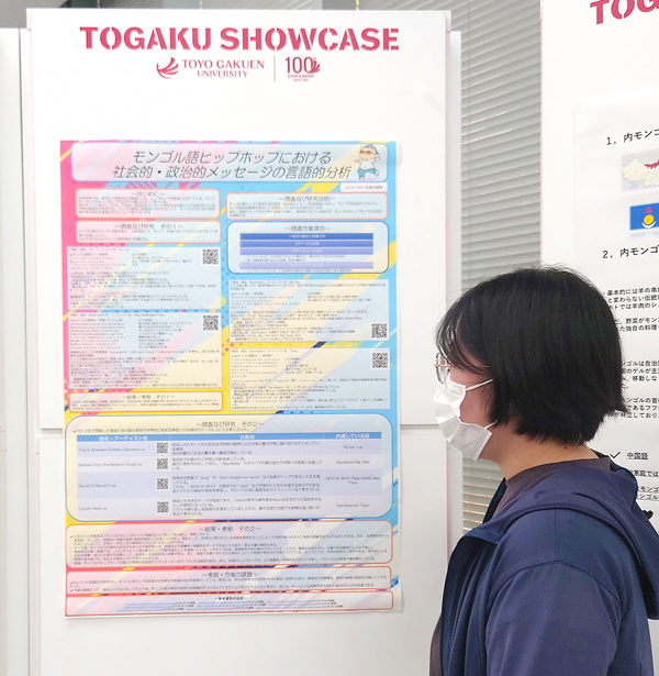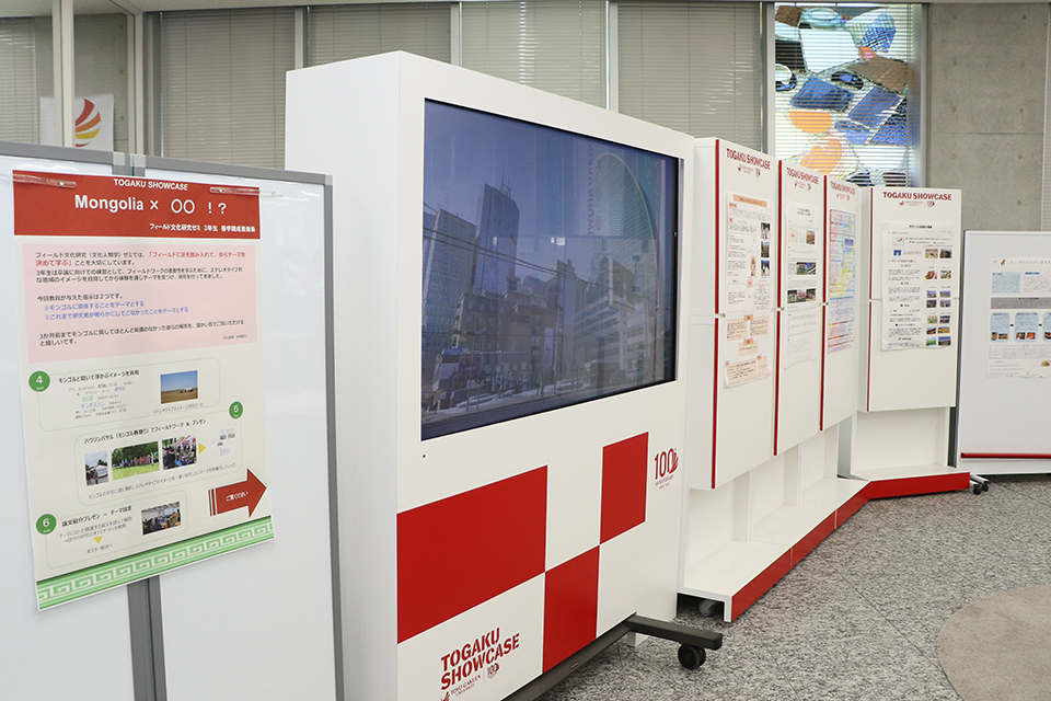 7/21(月)~24(木)、グローバル・コミュニケーション学部の「フィールド文化研究ゼミ」(中村知子専任講師)3年生が、1号館1階のTOGAKU SHOWCASEで「モンゴル」をテーマにしたポスター展示イベントを行いました。