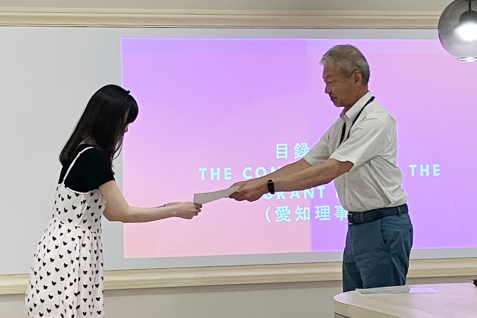 認定式・結団式では、辻中豊学長より留学許可書、愛知太郎理事長より奨学金・助成金の目録授与が行われました。