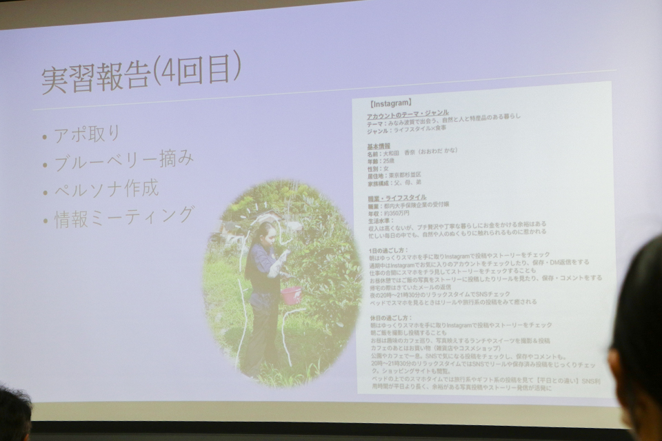インターンシップでは、SNSの運用をはじめ、道の駅で扱う新商品の企画提案に向け、自らアポイントを取って素材や協力企業を探したり、ペルソナ作成を行ったりといった実務に挑戦しているそうで、「様々な業種に触れる」「早くからインターンシップを経験する」という当初の目的に加え、経営やマーケティングについて実践する「貴重な経験ができた」との報告がありました。