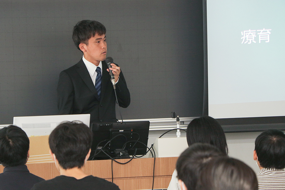 最後に登壇した学生は、福祉分野の「無料塾」と、医療分野の中でも「総合病院内の精神科」という2施設について発表。