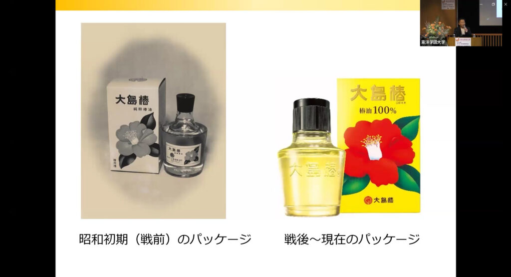 大島椿株式会社は、椿油製品『大島椿』をメインに製造・販売する会社。黄色地に一輪の赤い椿の花が描かれたパッケージでおなじみの製品は、全国のドラッグストアなどで販売されており、会場に集まった受講者にも広く認知されていました。