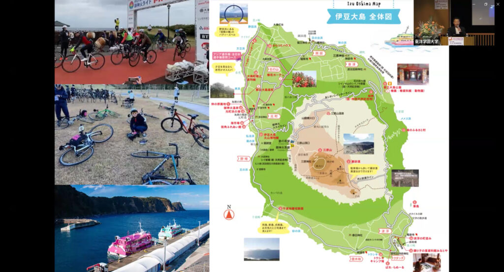 岡田氏は冒頭、自社の創業地であり、現在も製油所と直営店を構える伊豆大島について解説。東京都で一番大きな島であり、火山や日本で唯一の砂漠が存在すること、ウミガメが産卵に来ることなどをご紹介くださいました。