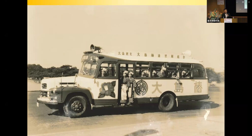 創業者は戦後、自社の製品だけでなく、伊豆大島の魅力を伝えるために全国キャラバンを行ったそう。まだテレビも高速道路もない時代に、アンコさんと呼ばれる島の女性たちと一緒にバスで日本中をめぐり、島の歌と踊りを披露しながら直売会を実施。化粧品メーカーらしからぬユニークな取り組みの背景には、「伊豆大島をPRして観光客を呼び込むことで、島を豊かにしたい」という想いもあったそうです。