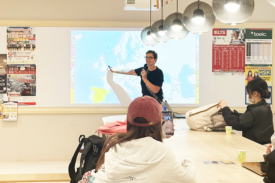 はじめに、Sarah Louisa Birchley教授より、スペインの地理的な位置や文化の特徴、食生活などについてご紹介いただき、参加者は興味深く耳を傾けていました。