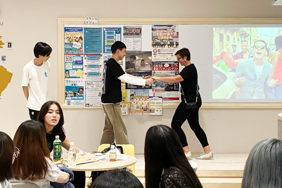また、スペイン語圏で人気のダンス・サルサ のレクチャーも行われ、Birchley教授の指導のもと、参加者は音楽に合わせて軽快なステップを楽しみました。