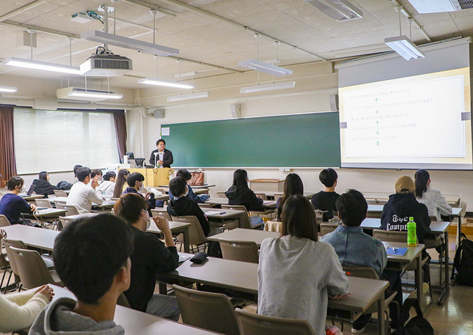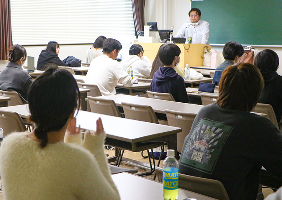 人間科学部の「地域ではたらく」(宮園久栄特任教授)では、公務員やNPO、福祉や司法など様々な領域で活躍する人々をゲスト講師に迎え、地域を支える仕事について学びます。