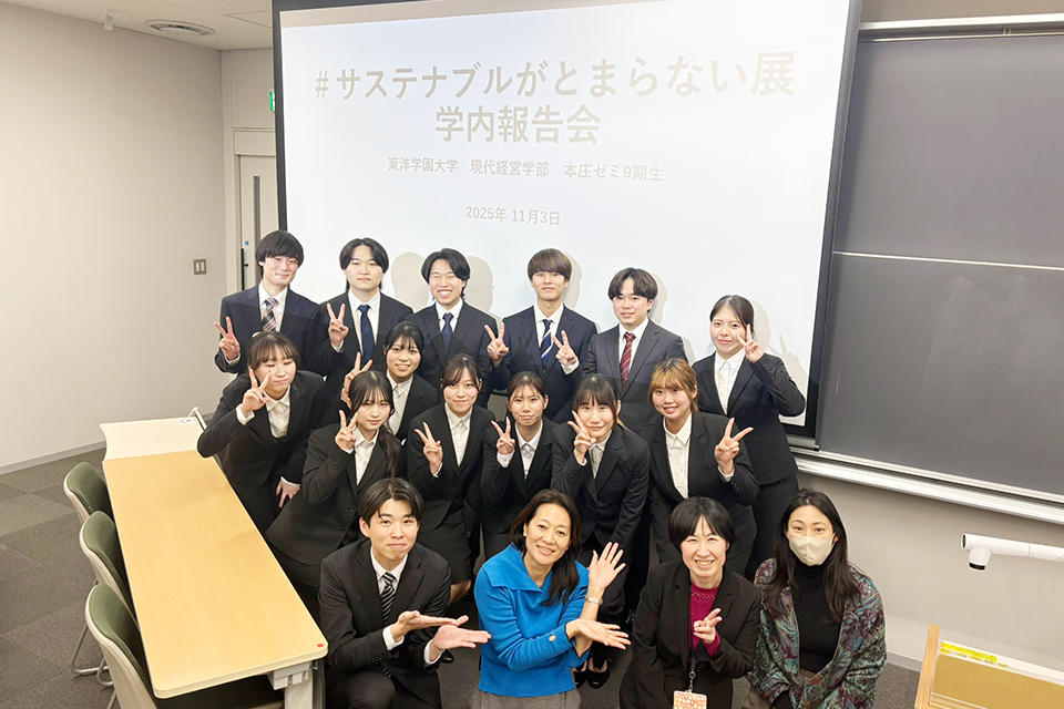 「マーケティング戦略とプロジェクトマネジメントゼミ」(本庄加代子教授)では、3つの企業との産学連携による学生発案のイベント「#サステナブルが止まらない展」のプロジェクトを実施。