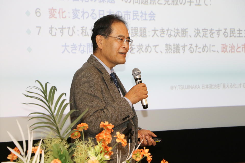 辻中学長は冒頭、「日本の政治は複雑でわかりにくい」と指摘。