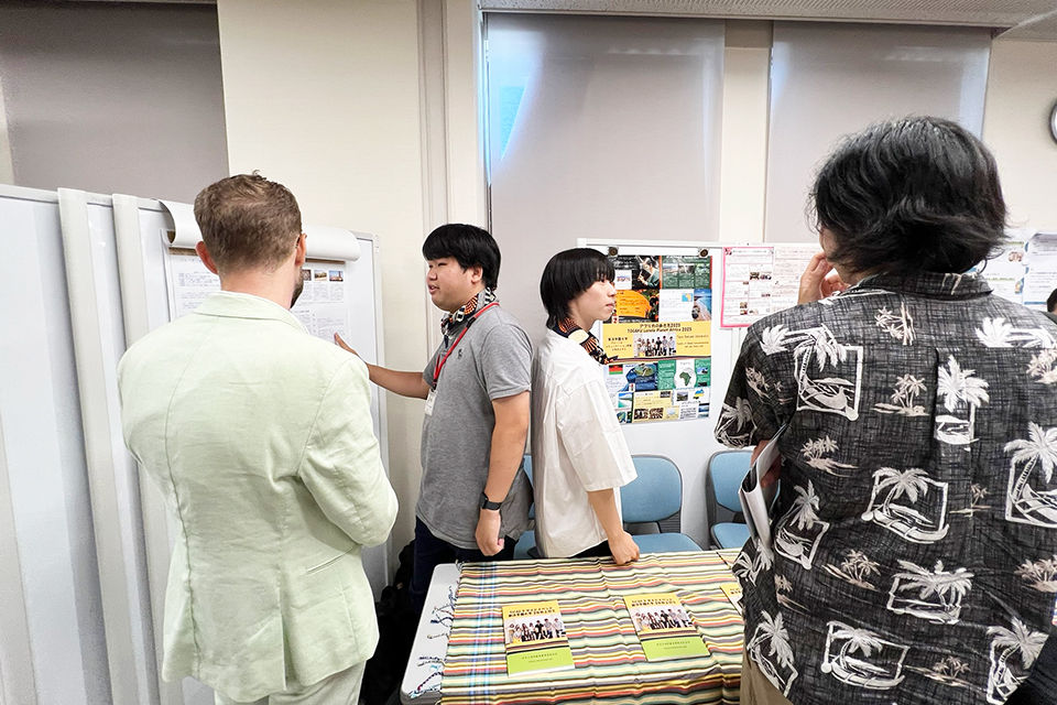ポスターセッションでいくつもの他大学の学生・教員と交流しながら準備する学生たち、気合が入ります。