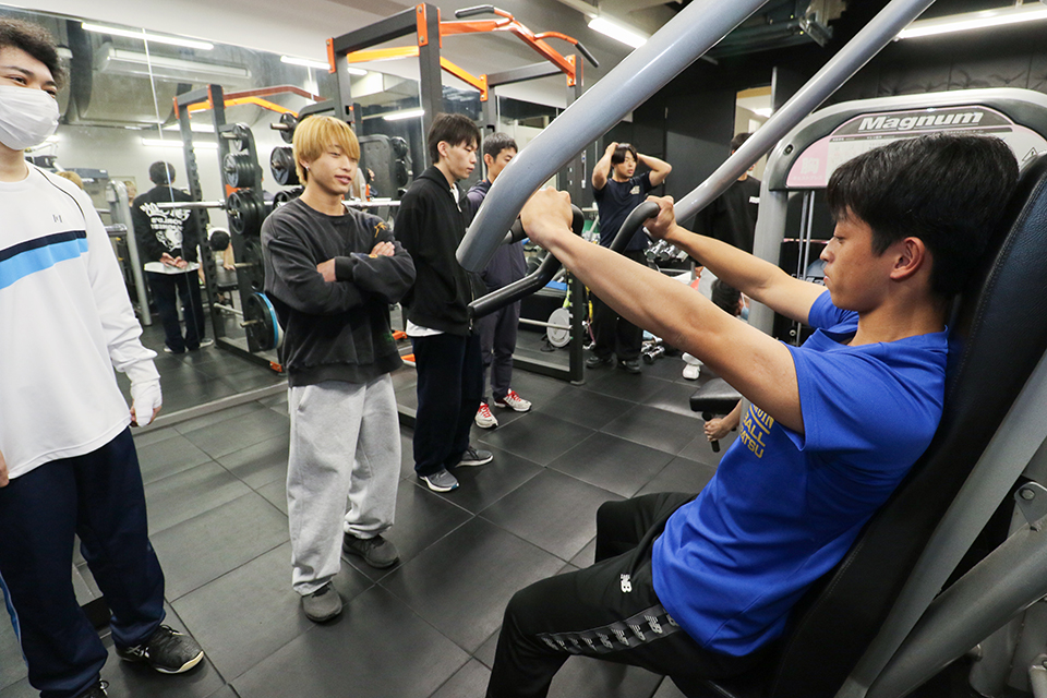 一方、トレーニングルームで行われた授業では、ウェイトマシンを使った筋力トレーニングやサーキットトレーニングを学びます。