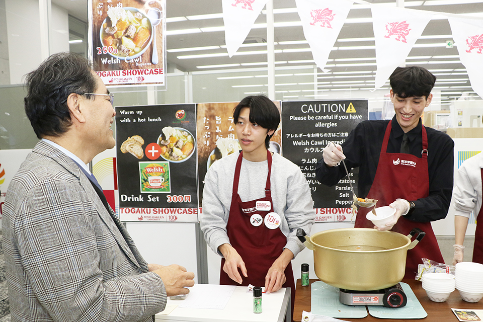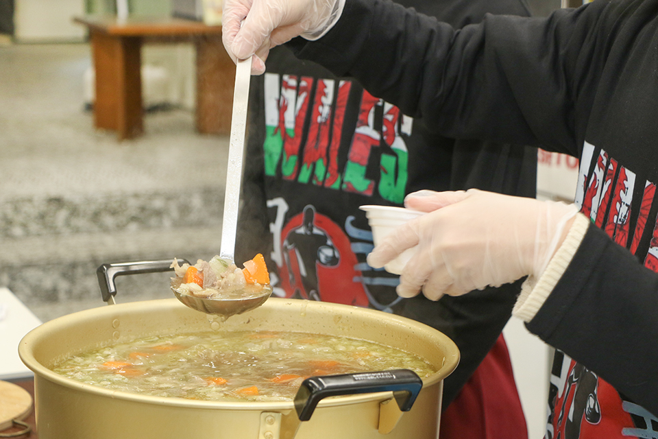 さらに、学生や教職員がウェールズ文化に親しむ機会を作ろうと、Birchleyゼミが用意したのが「Welsh Cawl」と呼ばれる手作りスープとWelsh Tea(紅茶)のセット(300円)。
