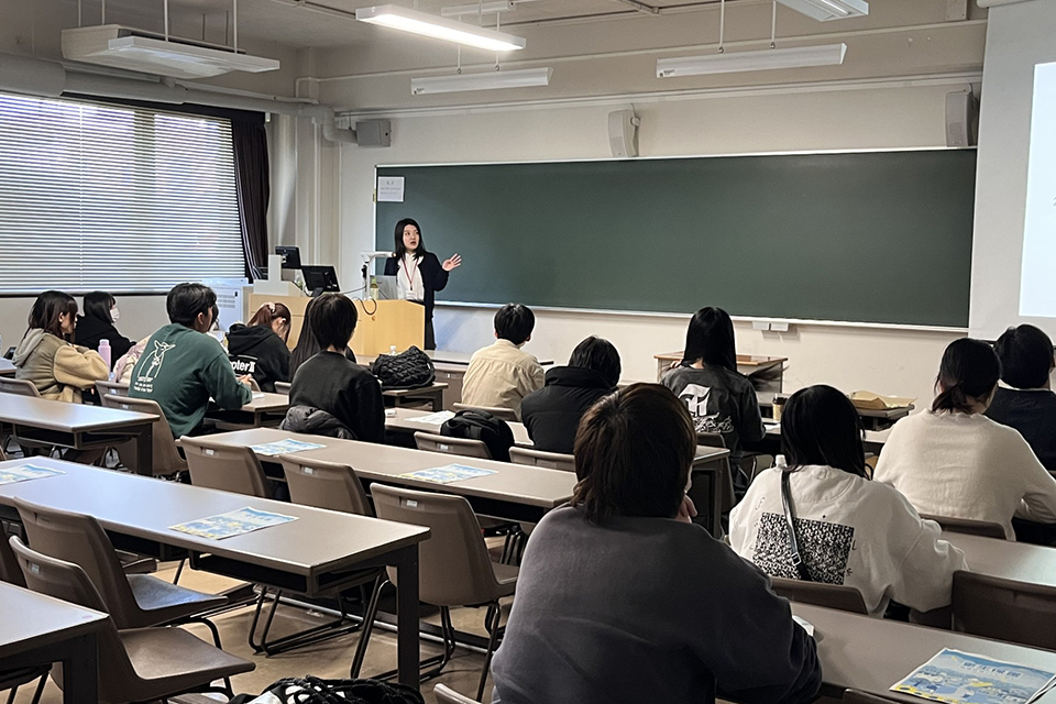 人間科学部の「地域ではたらく」(宮園久栄特任教授)では、公務員やNPO、福祉や司法など様々な領域で活躍する人々をゲスト講師に迎え、地域を支える仕事について学びます。