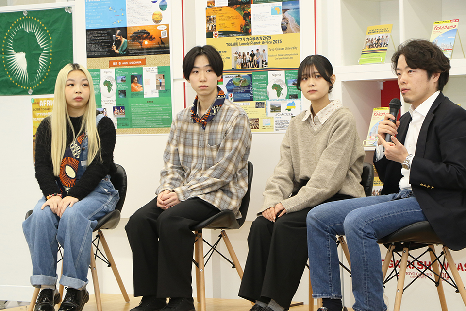 麗澤大学の佐藤講師や森井さんと共にトークセッションを行い、イベントのでの成果を振り返ったほか、アフリカ研究を通じてどのような発見があったかを発表しました。