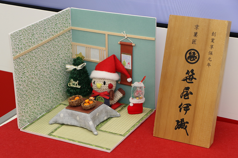 田丸氏とともに公式キャラクター「笹吉」もクリスマスの装いで来学