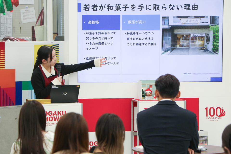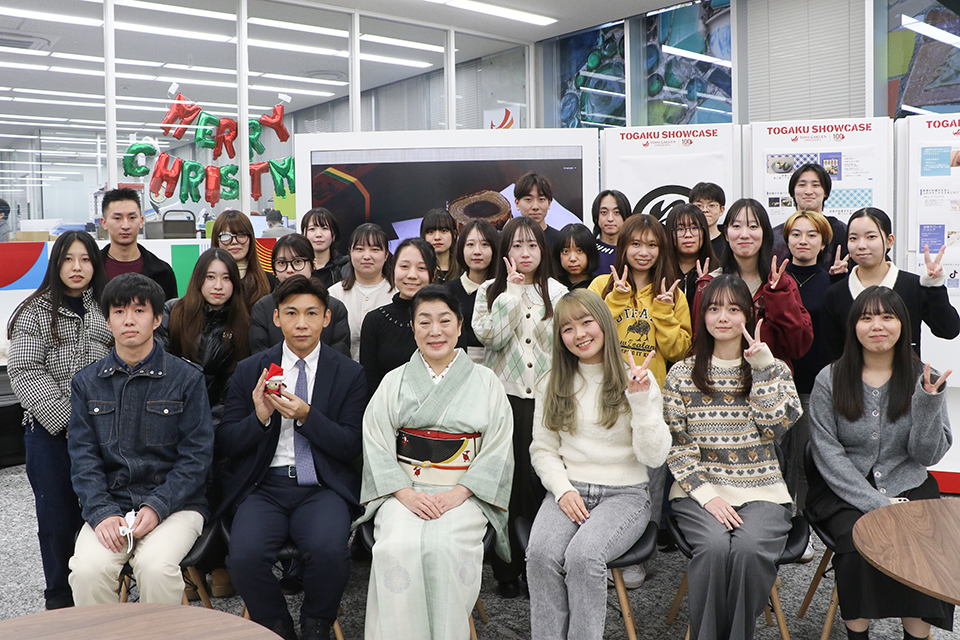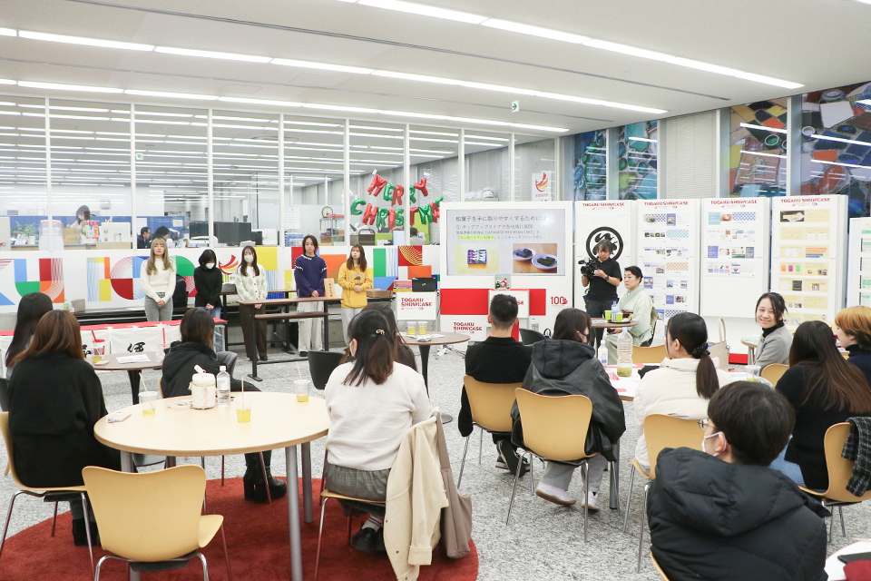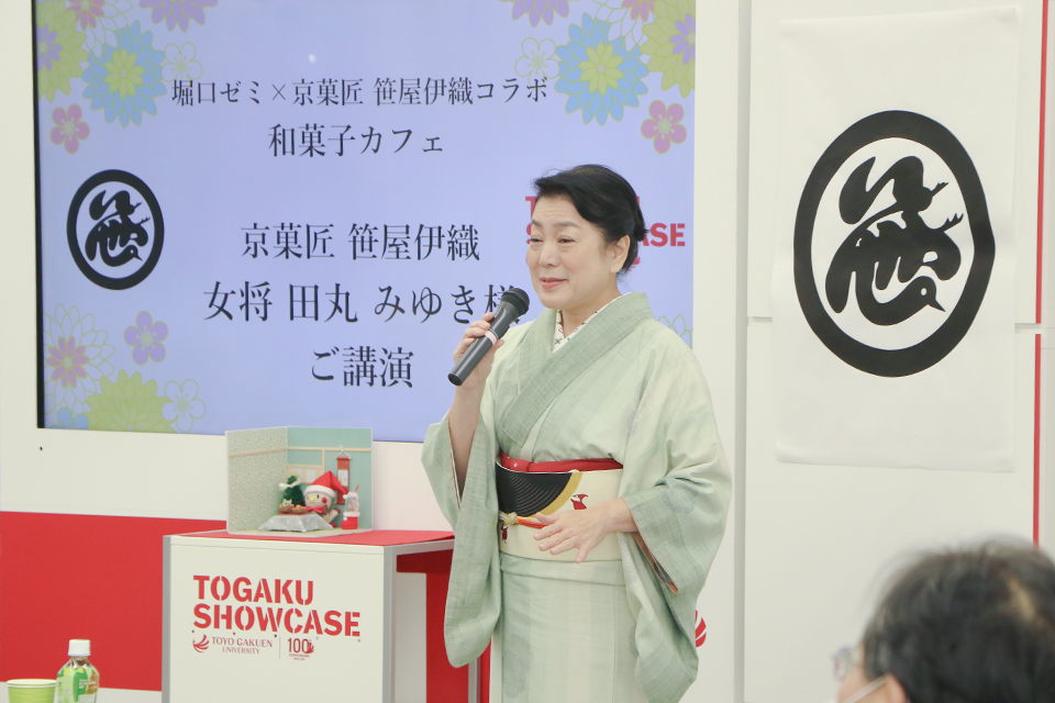 12/12(金)、去年に続き「TOGAKU SHOWCASE」に笹屋伊織の十代目女将であり、株式会社笹屋伊織の代表取締役を務める田丸みゆき氏を迎え、「和菓子カフェ」イベントと、ゼミ生によるプレゼンテーションを実施しました。