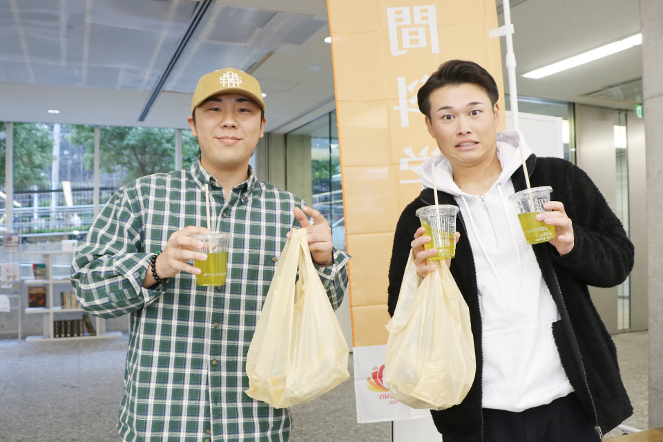サービスとして、環境に配慮した竹製ストローつきの緑茶も提供しました。