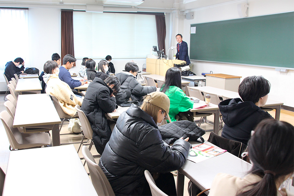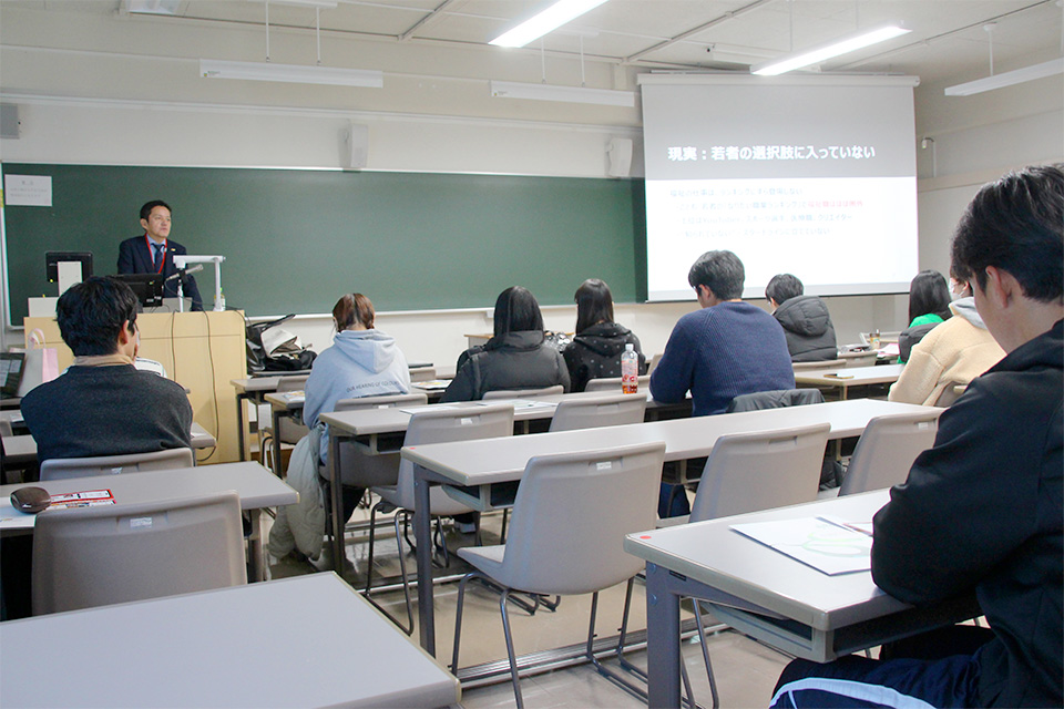 人間科学部の「地域ではたらく」(宮園久栄特任教授)では、公務員やNPO、福祉や司法など様々な領域で活躍する人々をゲスト講師に迎え、地域を支える仕事について学びます。
