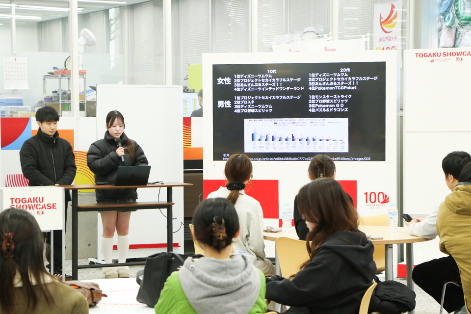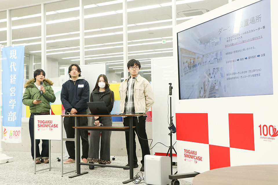1/19(月)、現代経営学部「新商品開発・デザインゼミ」(安藤拓生准教授)が株式会社ダーツライブの方々を招き、TOGAKU SHOWCASEにて産学連携PBLの最終プレゼンテーションを行いました。