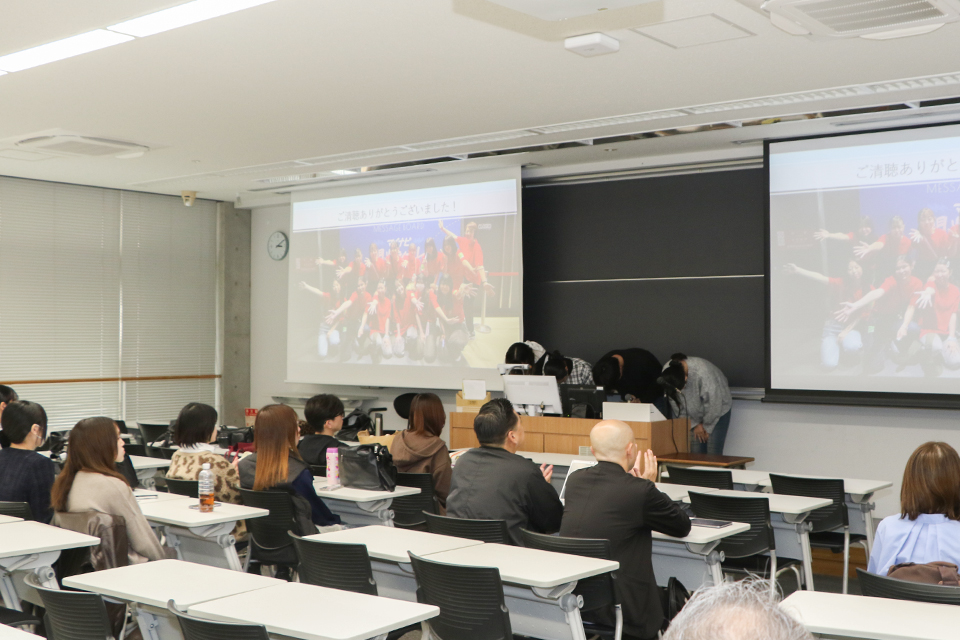 プレゼンテーションの終了後には、藤岡氏、椎村氏をはじめご協力いただいた方々から、フェスでの企画運営やゼミ生の成長について高い評価をいただき、ゼミ生一人ひとりから、改めて御礼のご挨拶をさせていただきました。