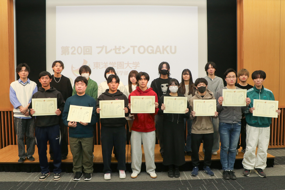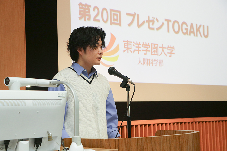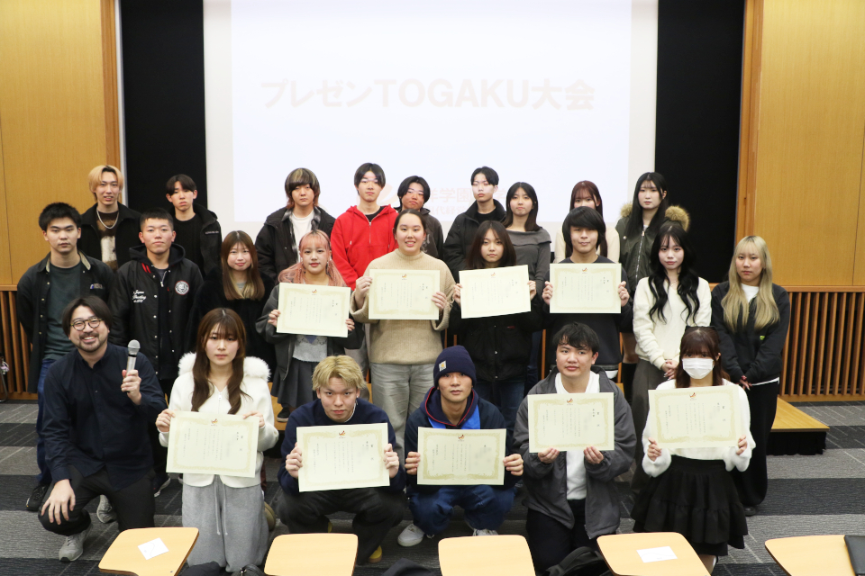 今年で20回目を迎える「プレゼンTOGAKU」は、入学後間もない学生一人ひとりが、自分自身の関心や疑問を出発点に課題を設定し、調査・研究を行い、その成果を人に伝える力を育むことを目的としています。