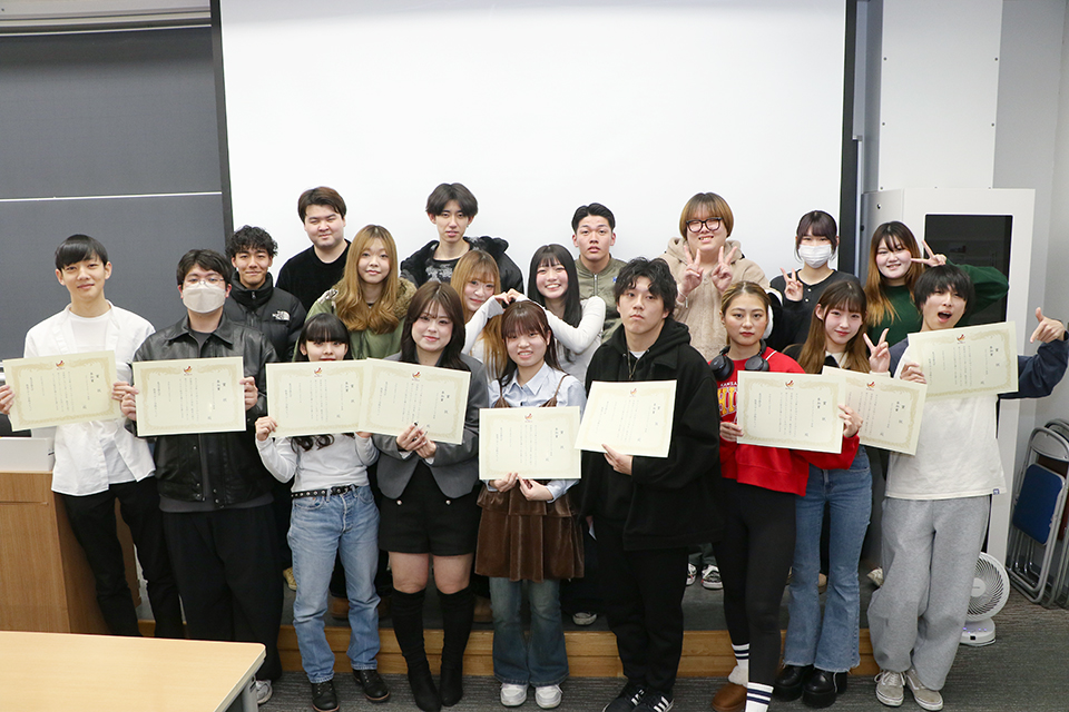 高尾享幸学部長は、「各々が『好きなこと』をテーマにプレゼンしてくれたのが良かった。教員としても新しい発見がある発表が多くあり、レベルの高さを感じている。これからも好きなことを深めて欲しい」と語りました。