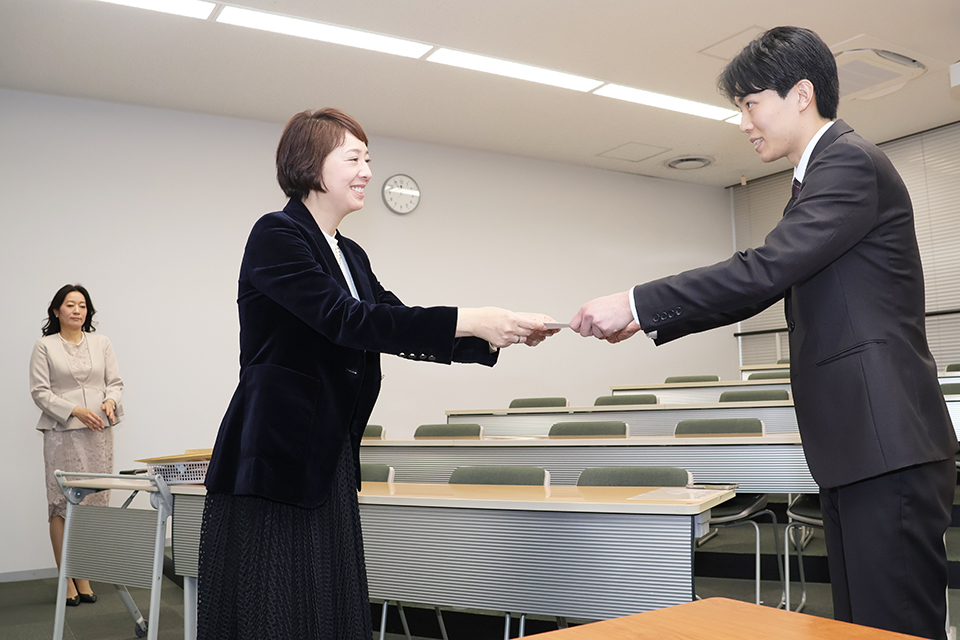 今期は櫻井さんのほか、人間科学部では韓国語能力試験(TOPIK)4級に合格した4年生に学部長賞を授与。