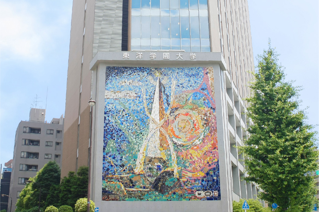1号館の壁面にある「フェニックス・モザイク」にちなんで名づけられた多目的ホール。モザイクをイメージしたカラフルな座席は可動式で、授業や学内イベントのほか、外部団体の講演会などにも利用されています。